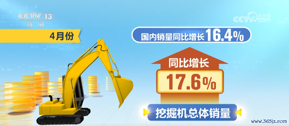 最新数据显示,4月份,挖掘机总体销量同比增长17.6%,其中国内销量同比增长16.4%。今年以来,挖掘机销量持续回升,反映出工程机械行业逐渐复苏和内需反弹的积极信号。国家信息中心最新数据显示,4月份,全国工程机械开工率环比增长了1.6个百分点,各地工程建设更加繁忙,其中路面设备表现突出。专家表示,道路基建正在全面升温,这既是季节性因素与政策发力的共同结果,也反映出中国经济逐步释放内生动能的趋势。稳增长政策正在转化为实物工作量,经济修复的“抓手”逐步显效。